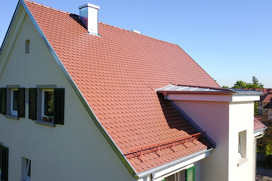 Kann hervorragende Dachdämmung gut aussehen? Wir sind überzeugt: Das geht. Bei der Sanierung dieses Hauses haben wir zwei Dämmebenen optisch ansprechend so kombiniert, dass wir den geforderten Dämmwert noch um 46 Prozent unterschreiten konnten. Der U-Wert liegt bei lediglich 0,128 W/m²K. Das rechnet sich doppelt: Der Besitzer konnte sich die begehrte KfW-Förderung sichern und spart nun kräftig Heizkosten.