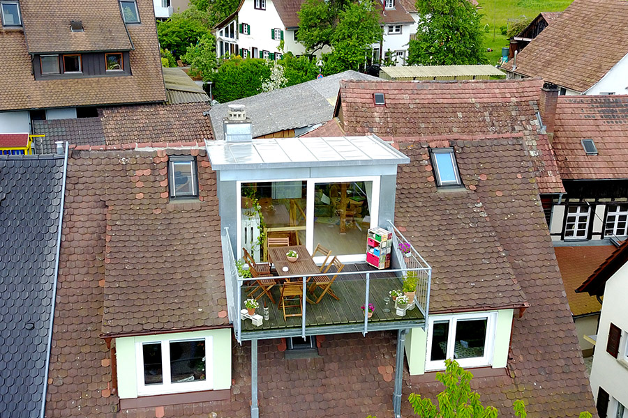 Mehr Raum, mehr Sonne. Wir bringen mit durchdachten Konstruktionen mehr Lebensqualität in Dachwohnungen. Mit diesem Gaupenausbau etwa haben wir dem Besitzer nicht nur den Wunsch nach mehr Raumhöhe erfüllt, sondern ihm auch noch einen großzügigen Balkon mit herrlicher Seesicht in Konstanz-Allmannsdorf gebaut.